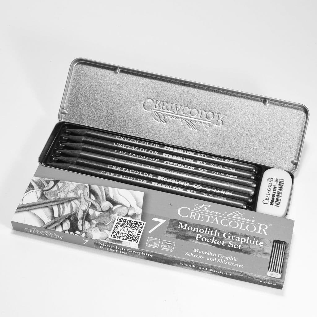 Cretacolor's Monolith Woodless Pencils aremade with the purest graphite from Austria, formed into a 7mm solid stick with a protective lacquer coating. Artists are thrilled by the broad and fine strokes that can easily be achieved with only one pencil.They are noticeably heavier than regular drawing pencils